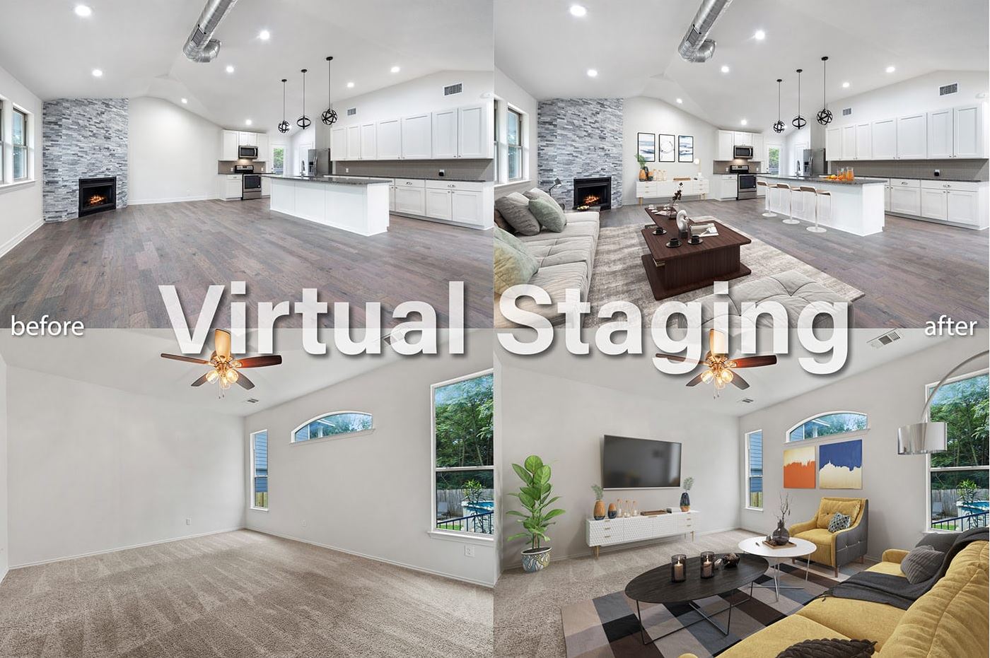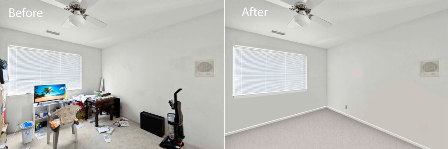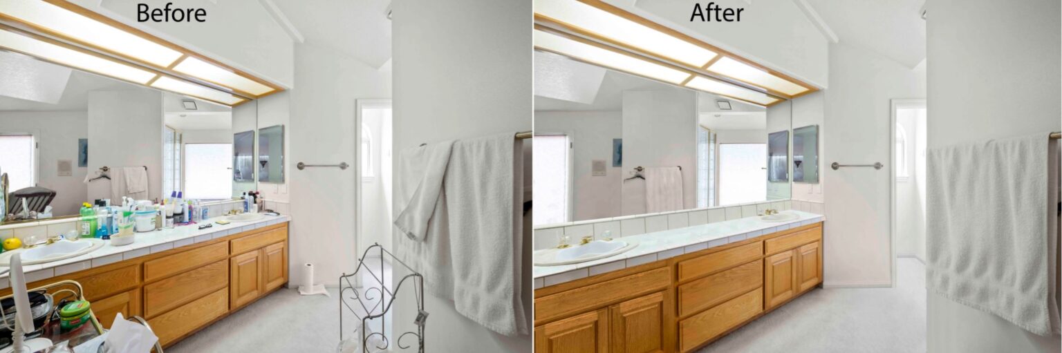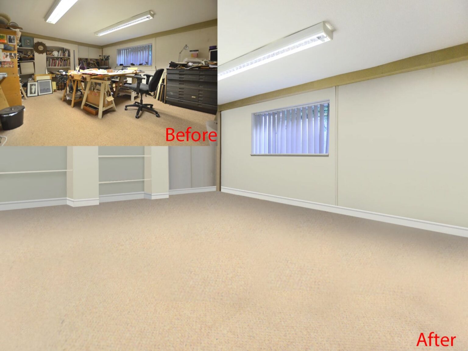But I will say this. Virtual staging is just a tool. In my view it should be used sparingly. It’s best use is to remove clutter like in the images above. Usually clients can remove clutter themselves but maybe time constraints prevent it. Overuse can actually hurt you because buyers can sometimes be disappointed if they are not aware that these images are simulations. This is why we show potential buyers the “before and after” photos and we are careful to explain that we are just helping them see the the potential of the property. Of course, this is your decision. I can give you more advice on this after I see the inside of your place. Note: we can also do this with landscaping and exteriors if it is useful for getting the sale. I will advise and leave it up to you. It is just a tool.
