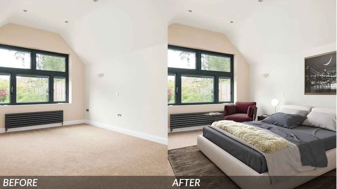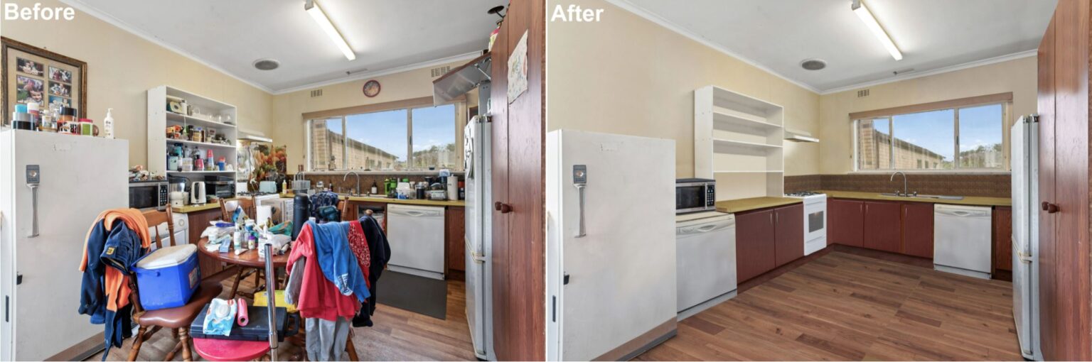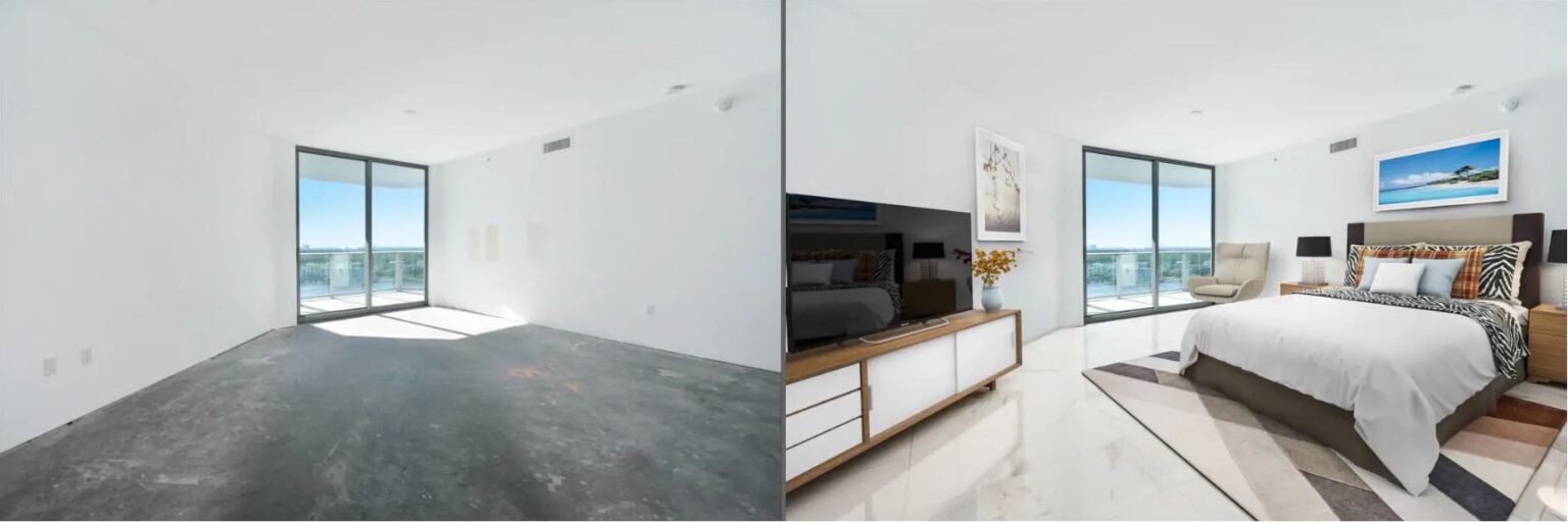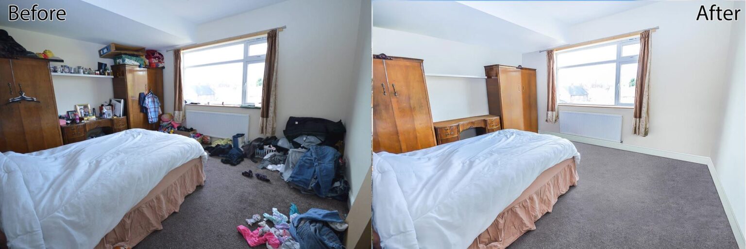 But I will say this. Virtual staging is just a tool. In my view it should be used sparingly. It’s best use is to remove clutter like in the images above. Usually clients can remove clutter themselves but maybe time constraints prevent it. Overuse can actually hurt you because buyers can sometimes be disappointed if they are not aware that these images are simulations. This is why we show potential buyers the “before and after” photos and we are careful to explain that we are just helping them see the the potential of the property. Of course, this is your decision. I can give you more advice on this after I see the inside of your place. Note: we can also do this with landscaping and exteriors if it is useful for getting the sale. I will advise and leave it up to you. It is just a tool.